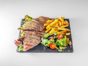 350g of our juicy national beef accompanied by fries, salad and the sauce of your choice.